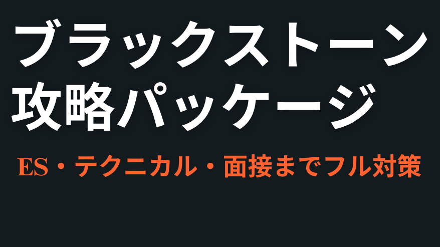 ・ブラックストーンの選考はES・テクニカル・ケース・面接の全てが高水準で揃って初めて通過できる。企業研究から最終面接まで、選考の全フェーズを一括で完成させる唯一の攻略パッケージです。