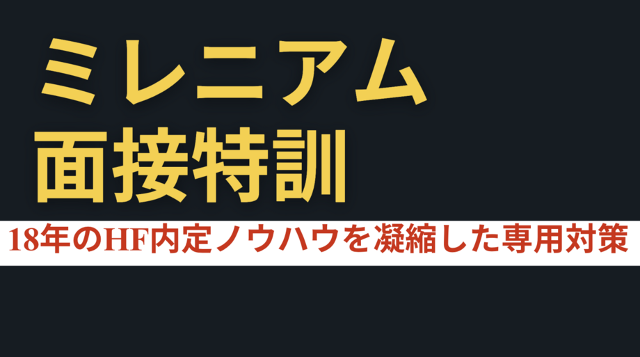 18年のHF内定ノウハウを凝縮した、ミレニアム選考突破のための完全専用トレーニング