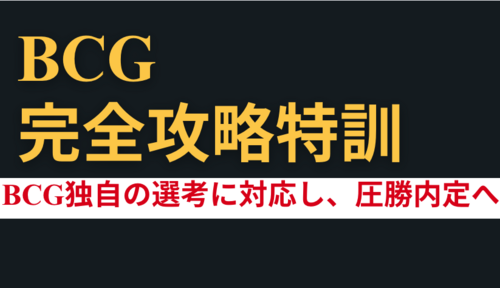 AcademyオススメBCG 完全攻略特訓✔ 企業研究・カルチャー・評価軸 ✔ 志望動機・キャリアストーリー ✔ ケース面接対策・仮説思考特訓 ✔ BCG独自ケース形式対策 BCG 完全攻略特訓の特徴 なぜこのプログラムなのか? ・BCGの選考を知り尽くした、本格完全攻・・・