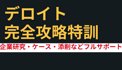 Academyオススメデロイト トーマツ コンサルティング 完全攻略特訓✔ 企業研究・評価軸理解 ✔ 志望動機・キャリアストーリー ✔ ケース面接・デジタル×戦略思考 ✔ グループ内での役割・差別化 デロイト トーマツ コンサルティング 完全攻略特訓の特徴 なぜこのプログラムなのか? ・デロイトの選・・・