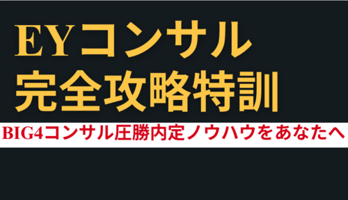 AcademyオススメEYストラテジー・アンド・コンサルティング 完全攻略特訓✔ 企業研究・評価軸理解 ✔ 志望動機・キャリアストーリー ✔ ケース面接・コンサル思考特訓 ✔ EYグループ内での役割・差別化 EYストラテジー・アンド・コンサルティング 完全攻略特訓の特徴 なぜこのプログラムなのか? ・EY・・・