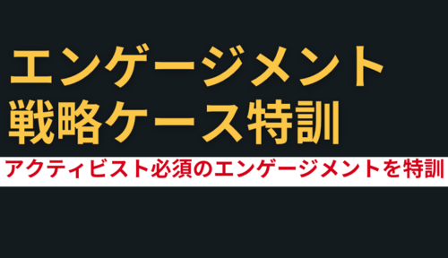 Academyオススメアクティビストファンド転職対策:エンゲージメント戦略ケース特訓✔ エンゲージメント戦略の構造 ✔ アプローチ理解 ✔ 対話型・対立型エンゲージメント ✔ 経営陣・取締役会への提案設計 ✔ 戦略ケース実戦演習 エンゲージメント戦略ケース 特訓の特徴 なぜこのプログラムなのか? ・アクティビス・・・