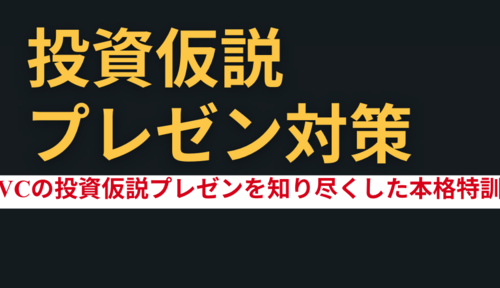 Academyオススメ投資仮説プレゼン対策✔ 投資仮説の構造・フレームワーク ✔ 市場・競合・ビジネスモデル分析 ✔ 投資判断ロジック・リスク分析 ✔ プレゼン構成・デリバリー 投資仮説プレゼン対策 特訓の特徴 なぜこのプログラムなのか? ・VCの投資仮説プレゼンを知り・・・